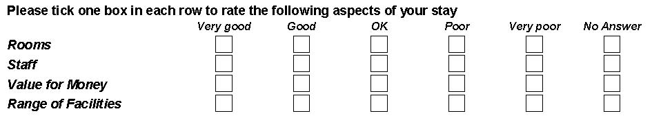 For example, if you are rating staff friendliness in your customer satisfaction survey, you may compare it with other experiences at other hotels or at the same hotel on other occasions.