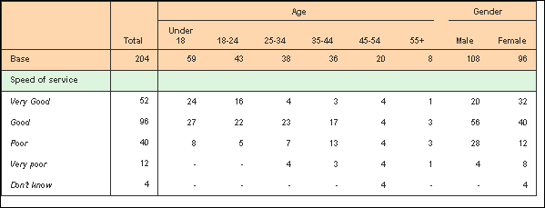Statistics tables display a selection of statistics about the variable. Enter the word STATS or select Statistics table from the dropdown list in either the Analysis or Break field. Statistics can be calculated on any variable or list of variables, although most benefit is achieved when analysing variables with a response of Quantity.