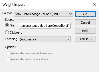 to open the Weights window and select File | Import to display the Weight Import dialog.