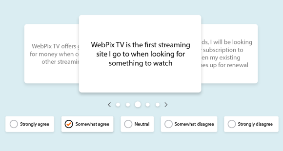 The individual question cards look modern and allow a respondent to focus on one statement at a time, before selecting their response.