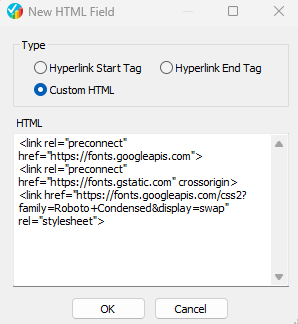 - Right click then select Insert|HTML Field from the pop-up menu.