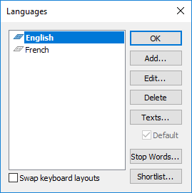 to display the Editions and Style Templates dialog. - Click Language to open the Languages dialog box.