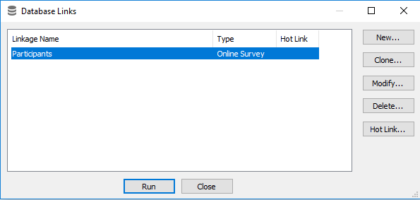 1. Click Run to generate the new participant data. The Run Database Link dialog appears.