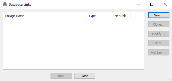 - Select File | Database Link to display the Database Linkage dialog and click New.