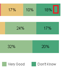 Category colours for any type of chart can be easily changed. In this example, the same colour style, Color – 5 Point Red to Green Labelled Stacked, is applied to a 4 point scale, which also includes a ‘Don’t Know’ option. In this context, the ‘traffic light’ colour labelling would be misleading. Changing the Don’t Know category colour from green to grey can show that this category is not included in the ratings. The same steps can be followed to change category colours in any style of chart.