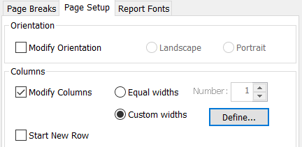 - Click the Define button to open the Custom column width dialog where you can set the column widths.