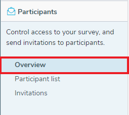 - Select the Participants side menu to view the participants and invitations. The Participants Overview is selected by default.