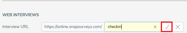 - In the Interview URL, click Copy URL to clipboard to copy the Interview URL link. The Copy URL to clipboard icon is available for published surveys only.