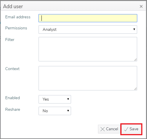 | Save | Click Save to add the user and set up sharing. |