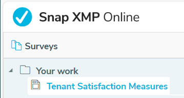 - The first page in Snap XMP Online shows a summary of Your Work. The Tenant Satisfaction Measures Survey template is available here. Templates are shown with the icon