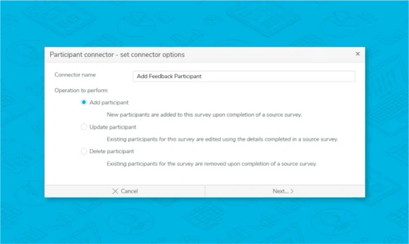 This means you can establish a participant database quickly and easily from an existing survey. You can also seed information that allows for greater personalisation, based on previously given answers.